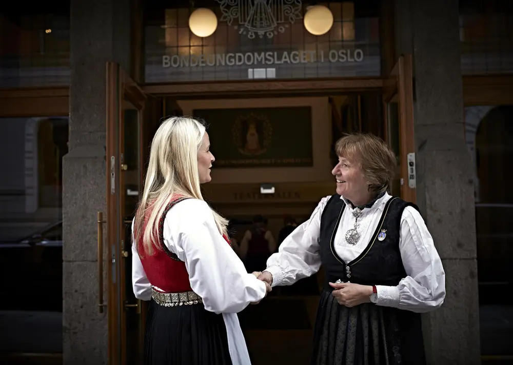 Crown Princess Mette-Marit and Marianne Borgen. Photo: Geir Dokken/bunadbruk.no.